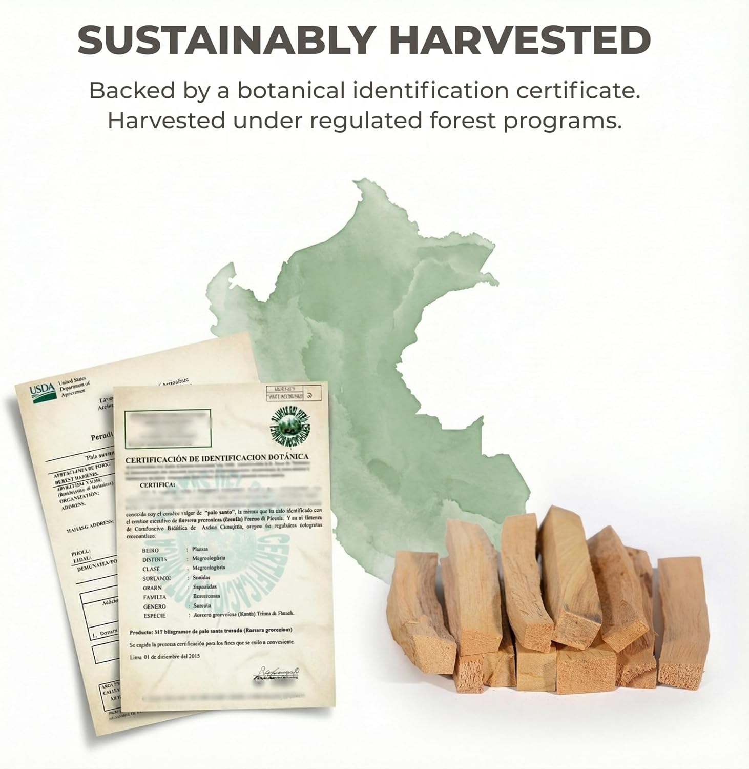 - Ethically Sourced — Our Palo Santo smudge sticks are sustainably and ethically sourced from Peru, where they are collected from fallen trees after their life cycle has ended.